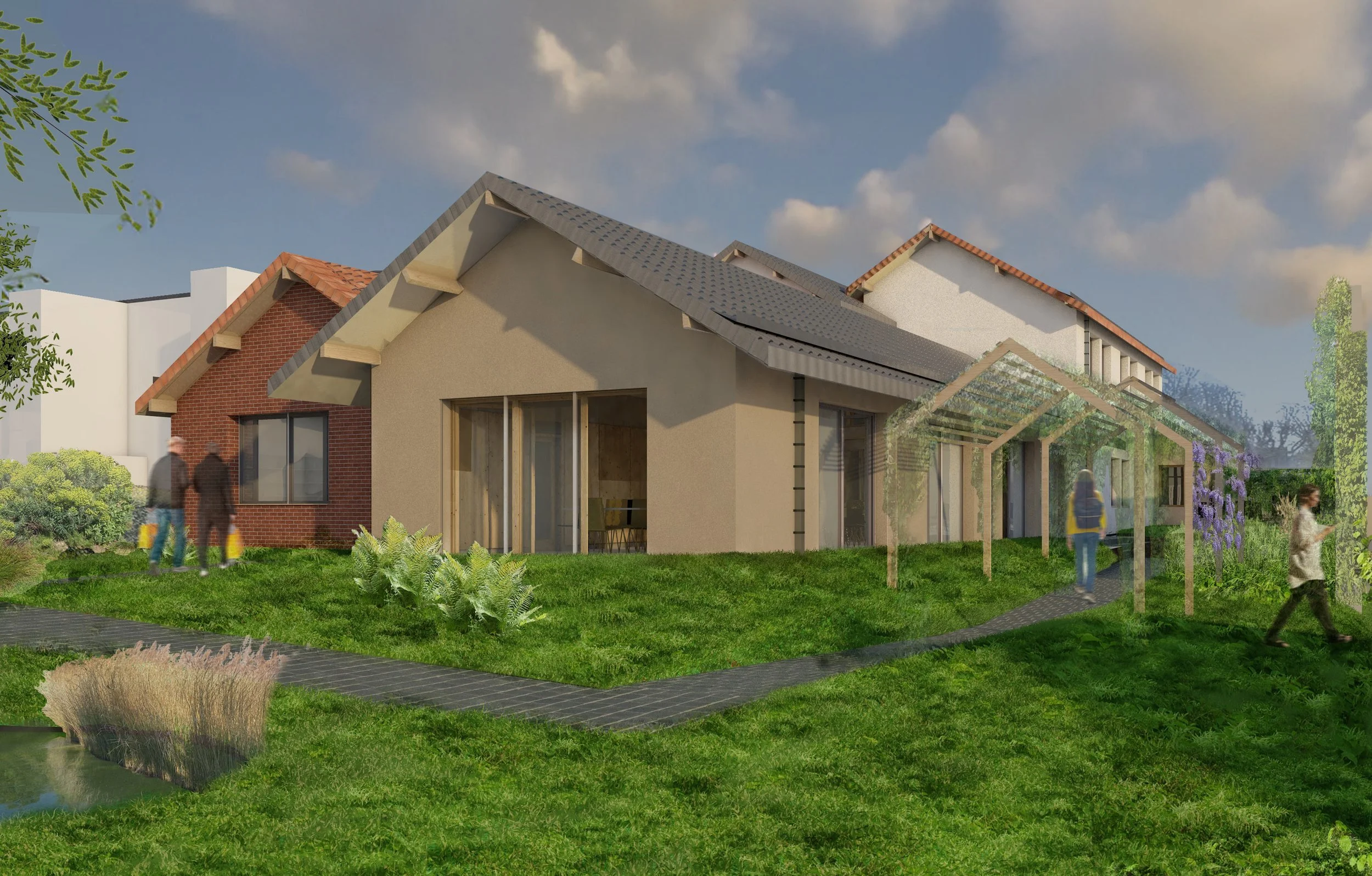 L’importance du programme est atténuée par des volumes de tailles domestiques, atténuant les hauteurs de faitages et générant un épannelage varié.